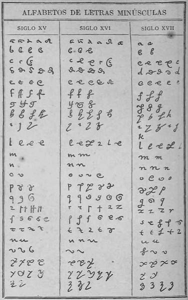 En los dos siglos siguientes se hizo mucho mas cursiva y de figura parecida a la de nuestra y minúscula manuscrita.