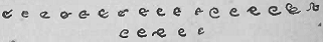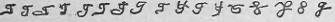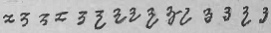Esta misma forma, con su perfil inferior vuelto a arriba y de derecha a izquierda, comenzada usarse en el siglo XIV. Las dos que siguen, formada una sin levantar la pluma en una sola línea tres veces ondulada, y la otra por tres trazos, de los cuales el grueso izquierdo no llega a tocar al superior de la letra, se generalizaron en el siglo XV.