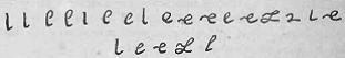 L. En los siglos XII al XV, presento dos formas esta letra: una capital, como nuestra moderna (L); y otra, de uso más frecuente, de carácter uncial, cuyo trazo primero estaba encorvado, y que presentaba el aspecto de un 2. Una y otra tienen precedentes en la escritura romana.