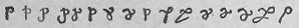 P. A dos se reducen las seis principales formas de esta letra, usadas en los siglos XII al XV. La capital (P) y la uncial, cuya curvatura ocupa la caja del renglón y cuyo trazo recto se prolonga por debajo de este. La segunda tuvo mayor uso. Las dos están tomadas de la capital y de la uncial romanas.